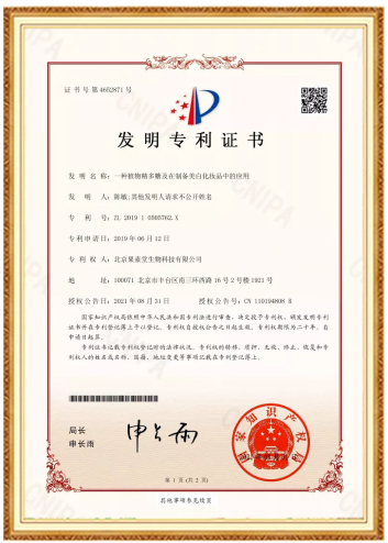 91茄子视频在线观看获得了“一种植物精多糖及在制备美白化妆品中的应用”和“无刺激性的白子菜活性物的制备方法及其应用”两项国家发明专利的授权使用,进一步赋能公司的核心研发技术,提升茄子视频懂你更多在线观看品质,更好满足市场需要。